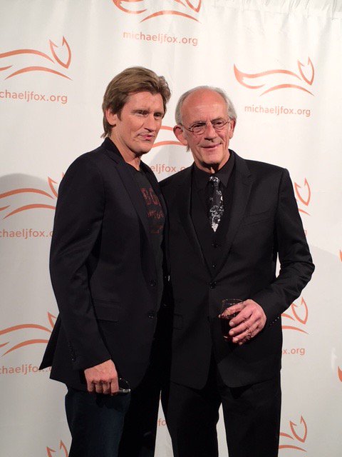 - November 15, 2015: The Waldorf-Astoria Hotel was the site on Nov. 14 of a fundraiser for the Michael J. Fox Foundation for Parkinson's research. David Letterman, IndyCar enthusiast, was present, along with a bunch of other celebrities. I have the highest admiration for Michael J. Fox. Denis Leary's Twitter account has lots of coverage. For example, here's Denis with Dr. Emmett Brown!